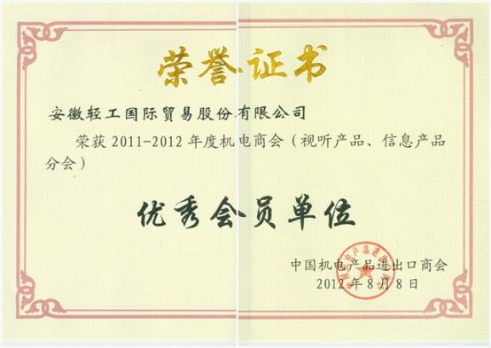 | 2012年08月 公司榮獲2011-2012年度機電商會優秀會員單位稱號 | |