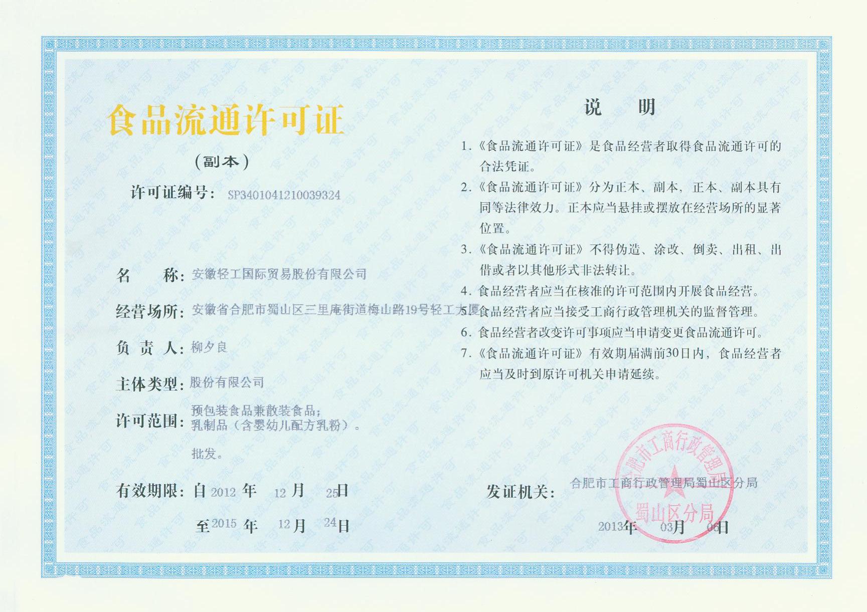 | 2013年01月 公司獲得食品流通許可證。 | ![]() |