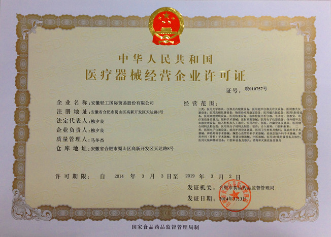2009年03月 公司成功獲得醫療器械經營企業許可證