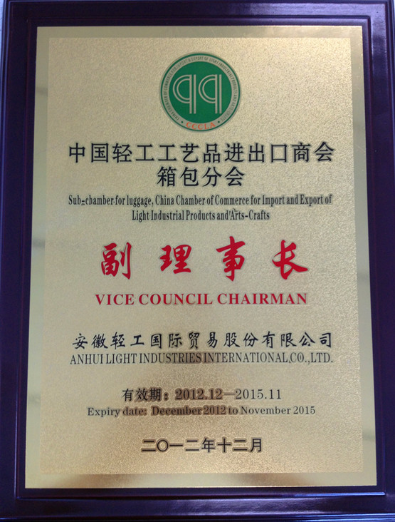 | 2016年12月 2016年12月,公司成為中國輕工商會箱包分會副會長單位 | |