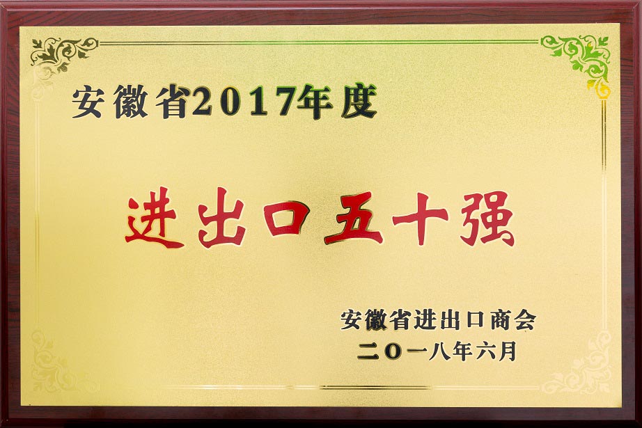 | 2018年6月,公司榮獲2017年安徽省進出口50強。 | ![]() |