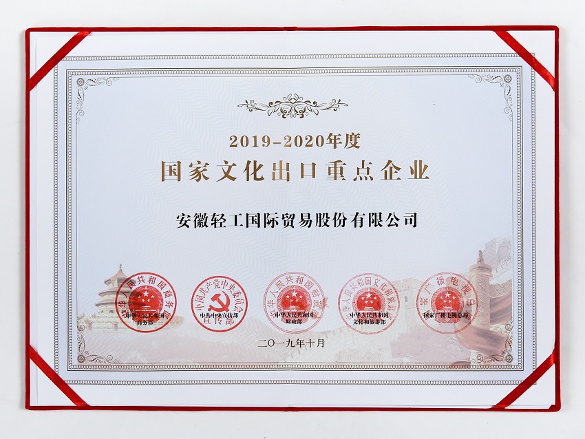 | 2020年4月 公司榮獲“2019-2020年度國家文化出口重點企業”稱號 | ![]() |