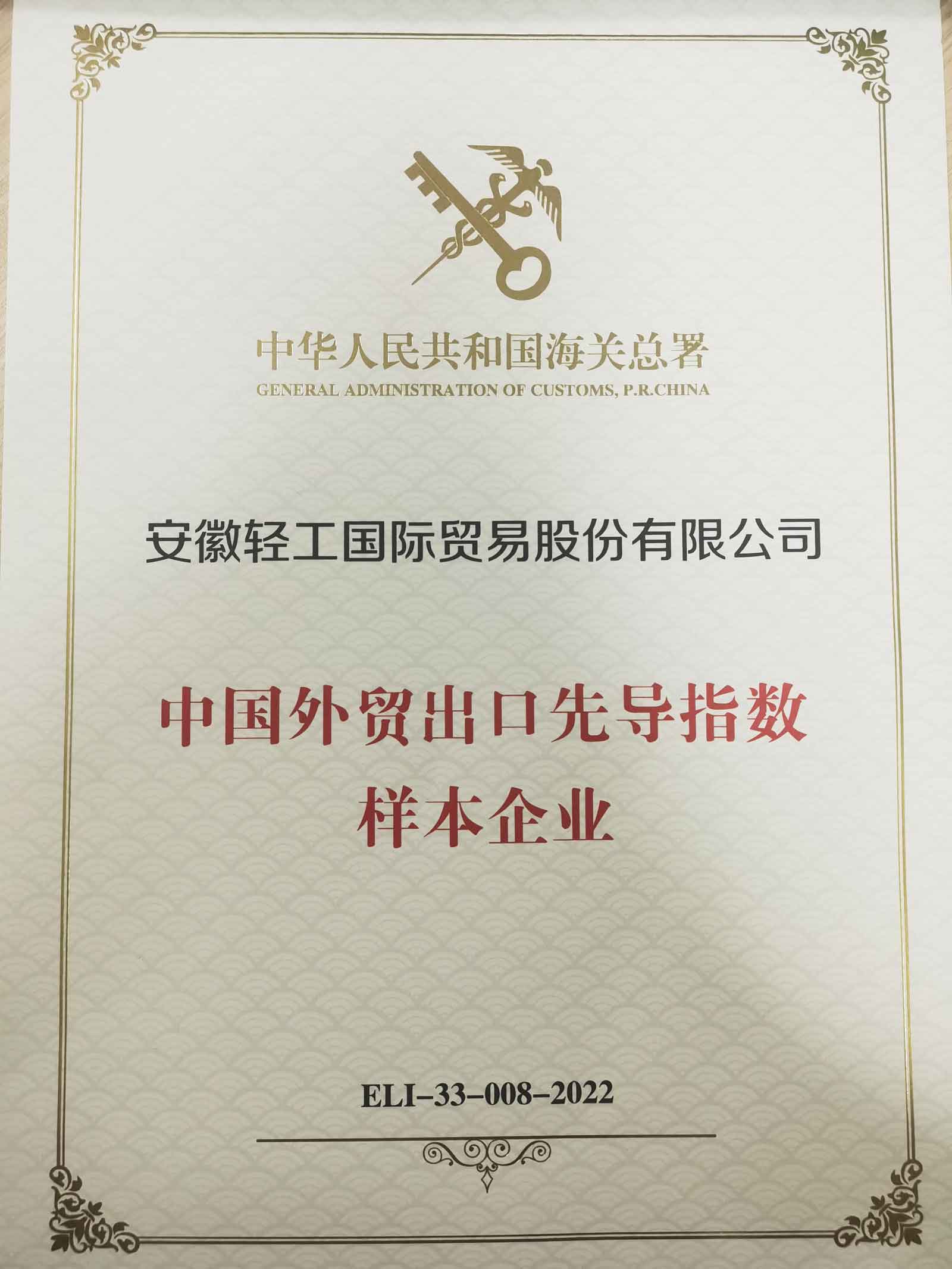 | 2022年6月 獲得海關總署頒發的“中國外貿出口先導指數樣本企業”稱號。 | ![]() |