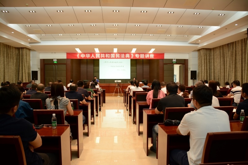 【安徽輕工網訊·省國貿集團網站消息】為貫徹落實習近平總書記關于充分認識頒布實施民法典重大意義的重要論述精神,9月10日下午,省國貿集團特邀九三學社中央委員會委員、安徽省委員會專職副主委張臘梅教授作《民法典》專題講座。副總經理劉為主持講座,集團本部及各成員企業共計100余人參加學習。