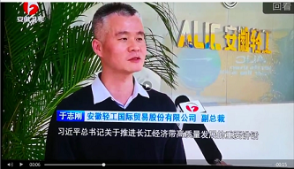 新聞聯(lián)播采訪了省內(nèi)多地高校、政府等相關(guān)人士,對習(xí)近平總書記在全面推動長江經(jīng)濟(jì)帶發(fā)展座談會上的重要講話精神領(lǐng)會。我司作為唯一被邀請的省內(nèi)企業(yè),由于志剛副總裁接受了記者采訪。于總在采訪中表示:習(xí)近平總書記在全面推動長江經(jīng)濟(jì)帶發(fā)展座談會上的重要講話,為我們指明了方向,堅(jiān)定了信心。我們會利用好安徽省自貿(mào)區(qū)的優(yōu)勢,大力發(fā)展“一帶一路”國家的進(jìn)出口業(yè)務(wù),努力在雙循環(huán)中謀新局譜新篇!