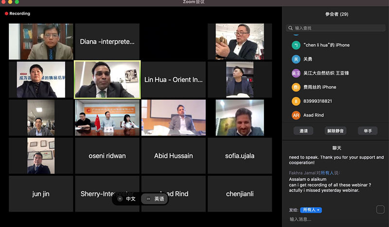 【安徽輕工網(wǎng)訊】日前,中國-巴基斯坦紡織業(yè)線上論壇活動在線舉辦。此次論壇由巴基斯坦駐上??傤I(lǐng)館與中國紡織進(jìn)出口商會聯(lián)合舉辦,旨在新冠疫情常態(tài)化條件下,促進(jìn)中巴紡織服裝業(yè)界交流,深化兩國業(yè)界合作,共同促進(jìn)兩國各領(lǐng)域友好關(guān)系的發(fā)展。巴基斯坦貿(mào)易發(fā)展局貝斯提·盧胡主任、巴基斯坦駐上??傤I(lǐng)館侯賽因·海德總領(lǐng)事做主旨演講,商會曹甲昌會長出席論壇活動并致辭。