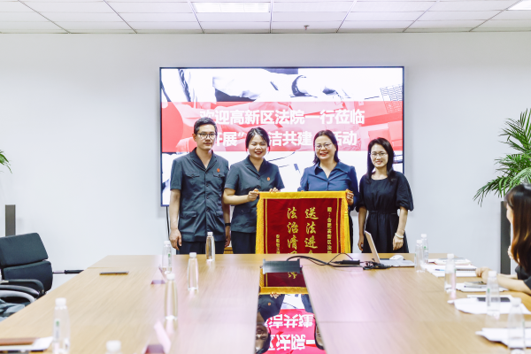 活動最后,紀(jì)委書記譚棟敏代表公司向高新區(qū)法院贈送了“送法進(jìn)企顯擔(dān)當(dāng) 法治清風(fēng)護(hù)企航”的錦旗,感謝高新區(qū)法院法官們深入企業(yè)普法的傾情之舉。